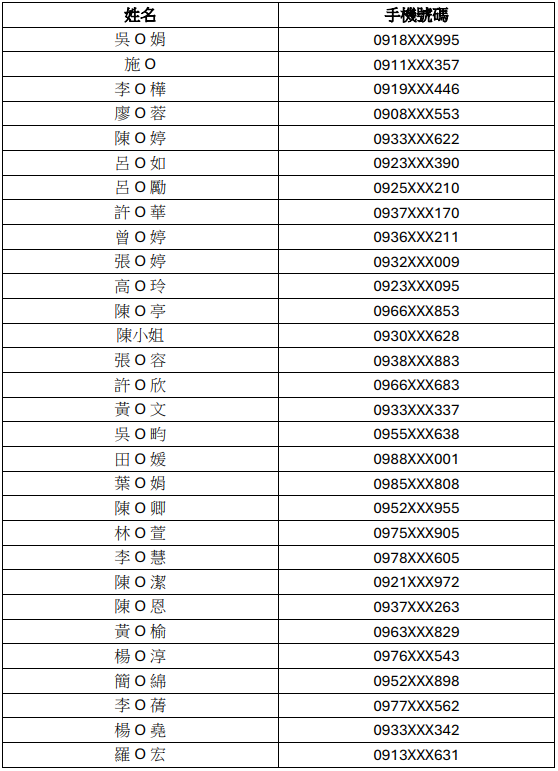 為答謝受訪者,故舉辦抽獎活動,獎品為100元 7-ELEVEN數位商品禮券 喜客券(50位),獎品將統一於2月26日前透過簡訊送出,中獎名單如下: